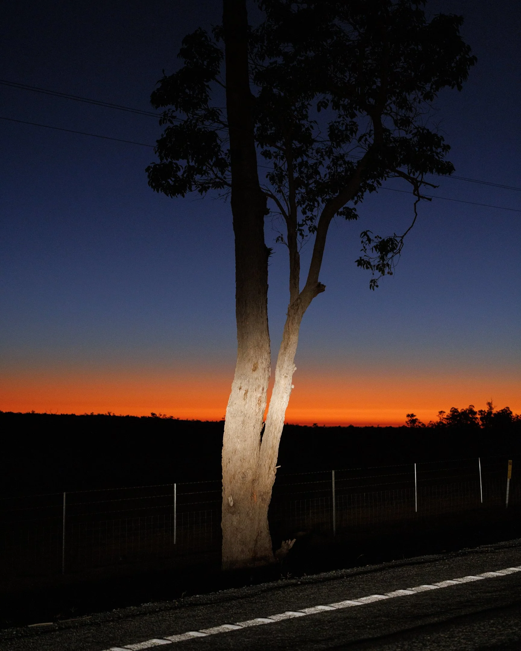 (Left) A conveyor belt used by Alcoa to transport Bauxite from the mines to the refineries near the coast. (Right) A Jarrah tree near Pinjarra.