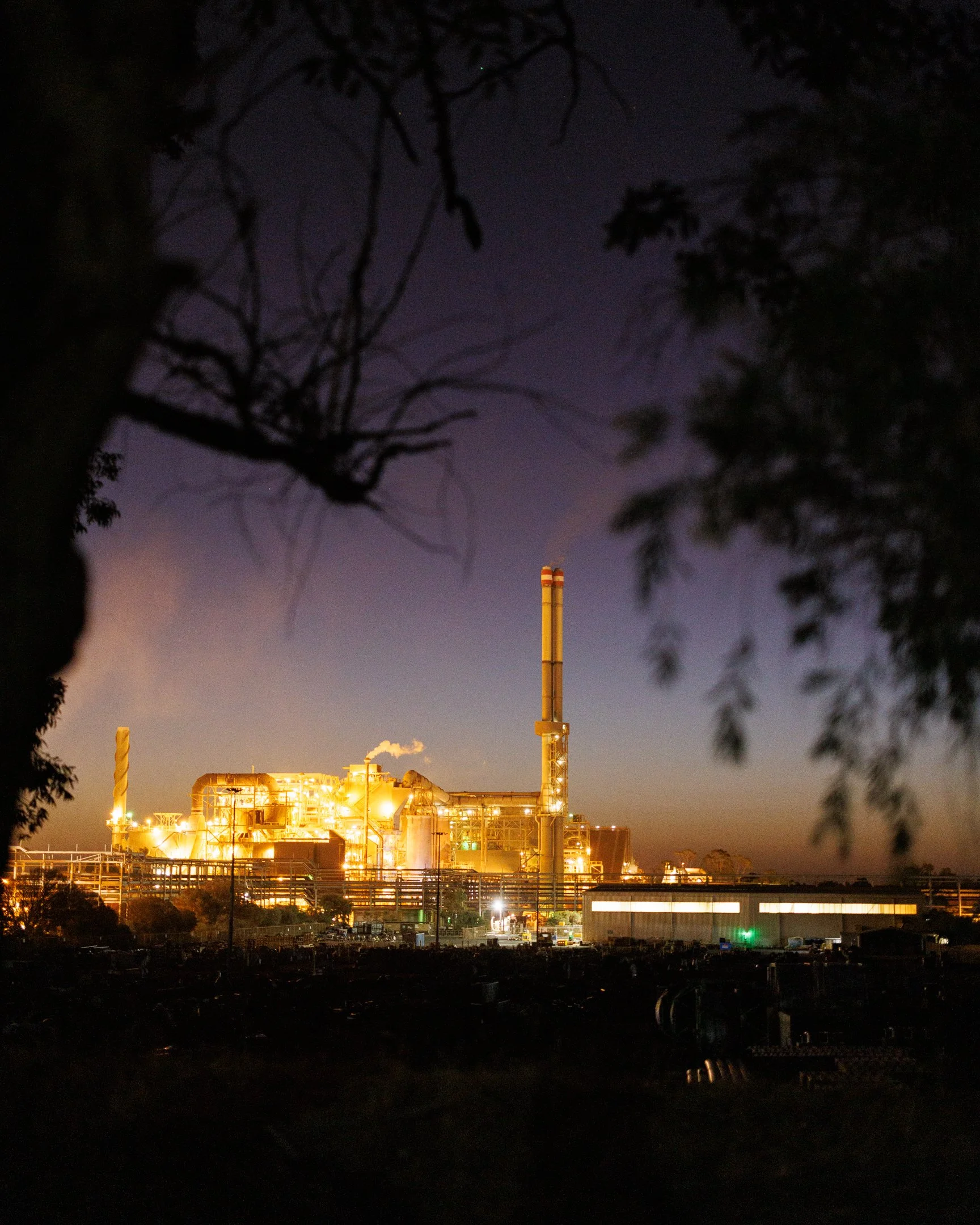 (Left) Former Alcoa worker Dave Puzey photographed at home in Binningup, Western Australia, on March 27, 2025. Puzey experienced long bouts of extreme lethargy a few years into his 11-year stint at Alcoa in addition to chronic respiratory illness and debilitating chemical sensitivity, all of which gradually worsened, he said. (Right) Alcoa’s Wagerup refinery, near Yarloop, Western Australia, on March 16, 2025.