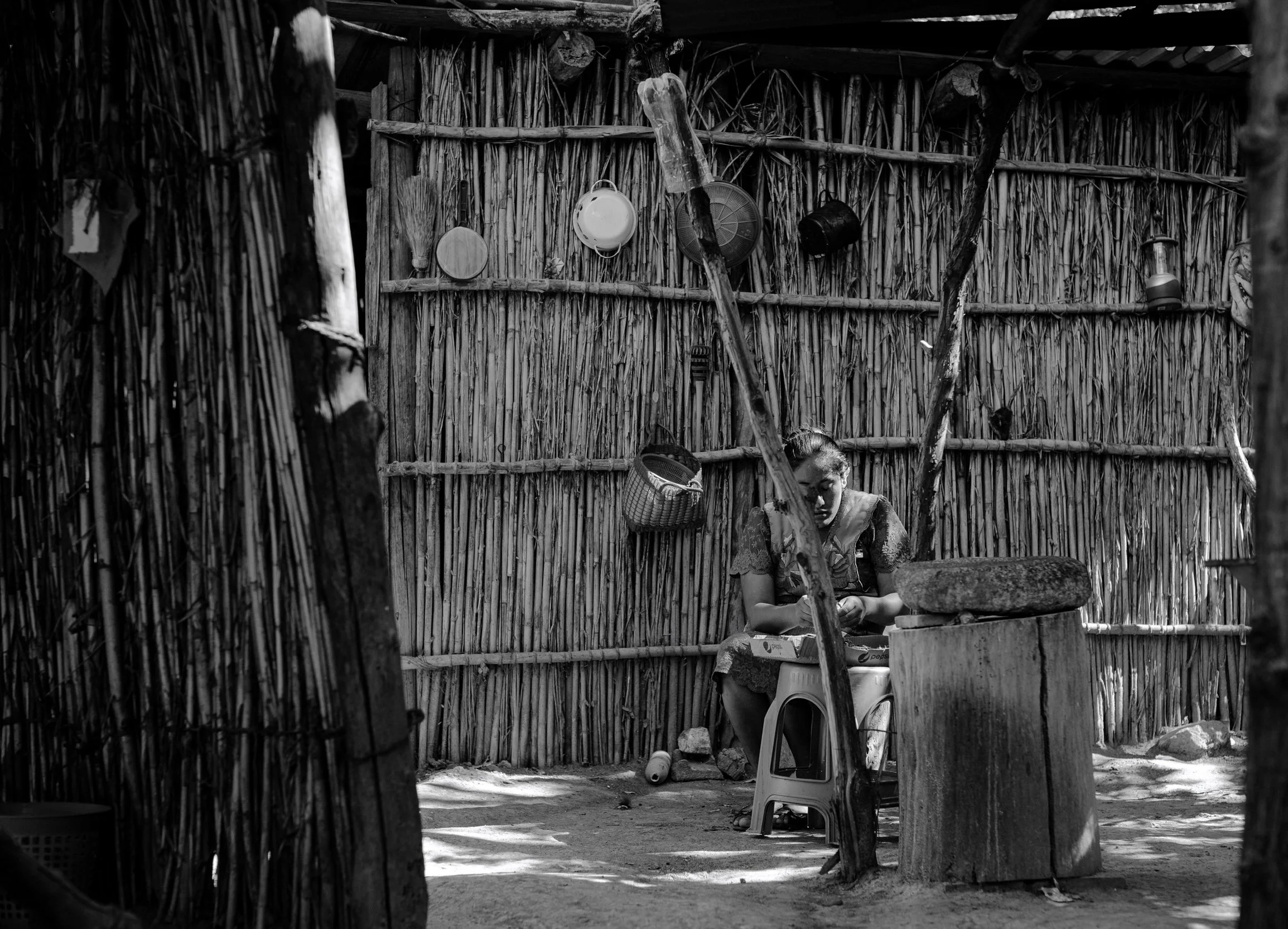 Flavia Luís Morelos, Manuel García’s wife, prepares a meal of prickly pear cactus soup at the family’s palenque outside of San Dionisio Ocotopec, Oaxaca, Mexico on December 15, 2021.