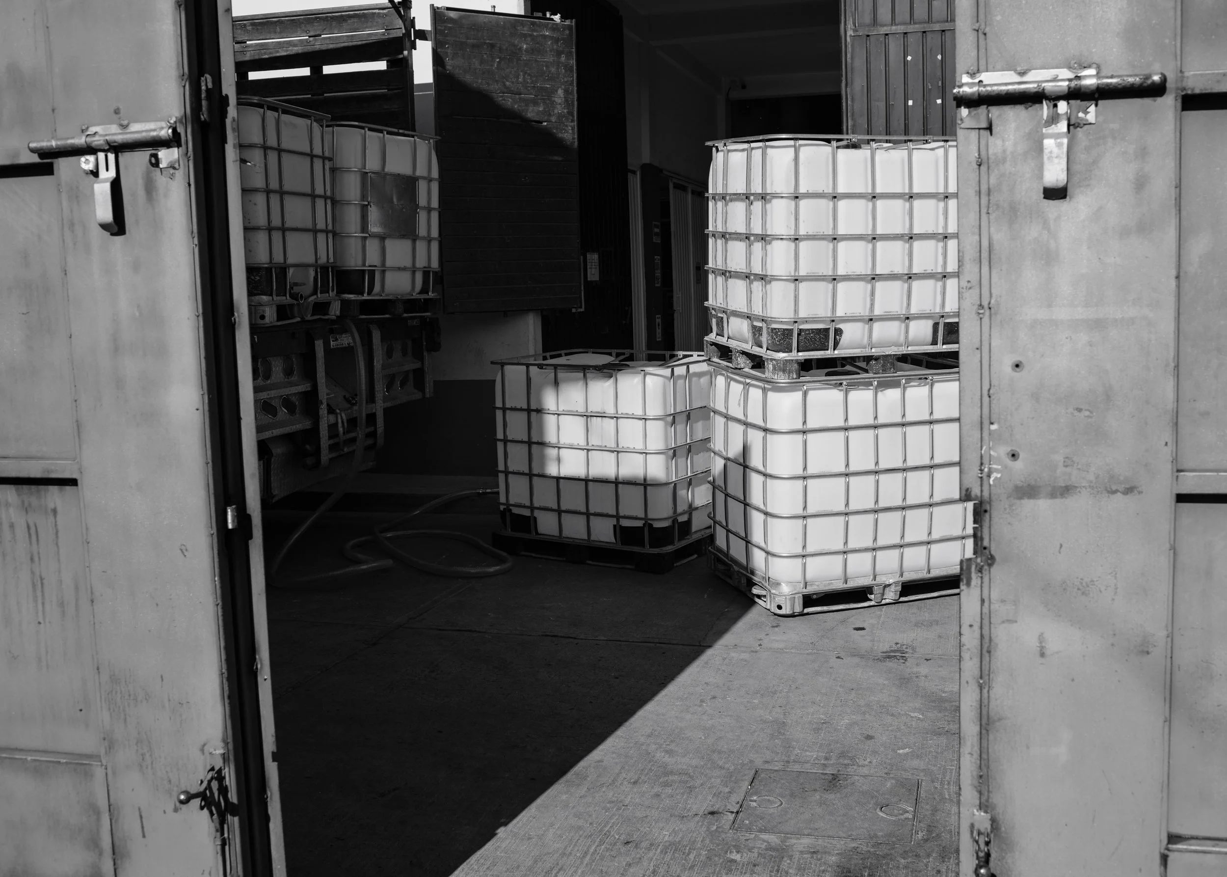 Large containers of mezcal are unloaded at a Del Buen Agave bottling facility in Santiago Matatlán, Oaxaca, Mexico on Jan 31, 2022. Carlos Mendéz says the business has grown substantially in recent years by buying batches of mezcal from smaller producers and blending them together to resell to large brands like José Cuervo.